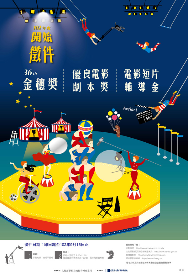 由文化部影視及流行音樂產業局主辦、財團法人國家電影資料館承辦的「第36屆獎勵優良影像創作金穗獎」實施要點正式公布,收件期限為102年8月15日起至9月16日止。
