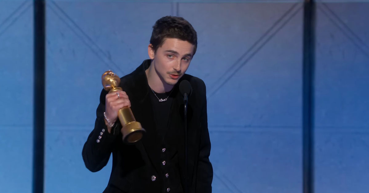 致詞時,提摩西夏勒梅先表達對於一同入圍者的肯定,表示此獎項競爭者人才濟濟,匯集了許多優秀人才,接著感謝了導演賈許沙夫戴、編劇羅納德布朗斯坦、同片演員:凱文奧利里、歐德莎艾德蘭、法蘭德瑞雪、葛妮絲派特洛和造物主泰勒。